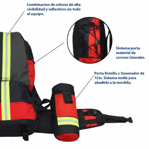 Mochila pensada para trabajo en campo exigente, ideal para tareas de extinción y prevención de incendios forestales. Fabricada con materiales resistentes y livianos, ofrece una distribución funcional de bolsillos para transportar herramientas, hidratación y elementos personales con total comodidad.