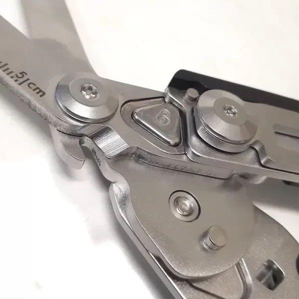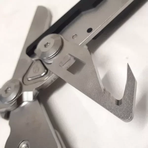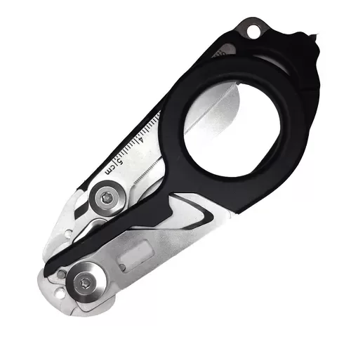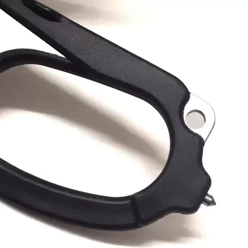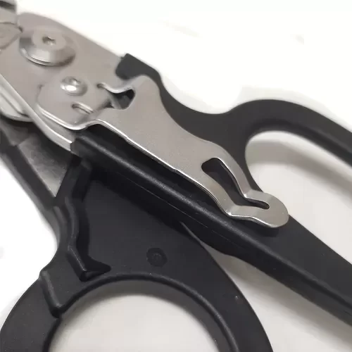 En su posición desplegada ya como tijera, encontramos en la base de las hojas una pequeña mueca que es un cortador de anillos, que suele ser una característica bastante útil para ciertas maniobras de emergencia.