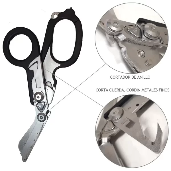 Es un tijera plegable que contiene varios beneficios en un mismo equipo.