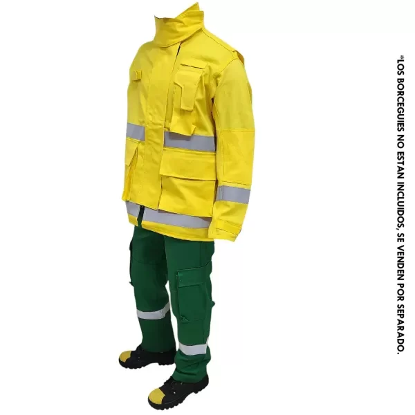Fabricado con materiales de alto rendimiento, este conjunto brinda una resistencia superior al fuego, el calor y las condiciones adversas propias del combate de incendios forestales.