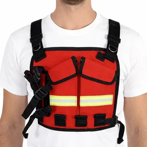 La pechera forestal de comunicación está pensada para transportar de manera segura y eficaz los elementos de comunicación, geolocalización, y meteorología.