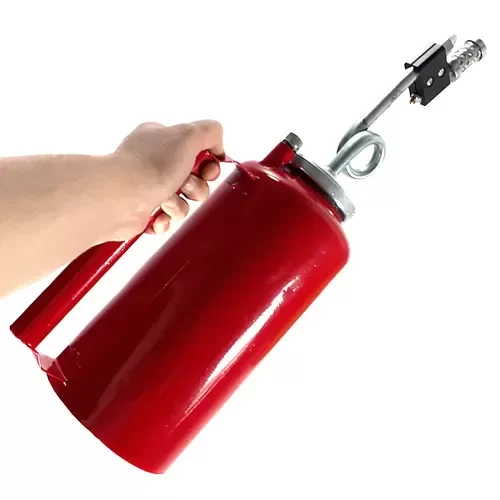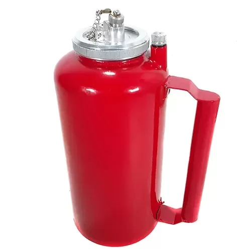 Es un contenedor de metal ligero resistente a altas temperaturas y a golpes de unos 3 litros de capacidad, que contiene combustible con un mango en uno de los lados, de la que sale una vertedera o tubo con un bucle que impide que el fuego retroceda al interior del contenedor.