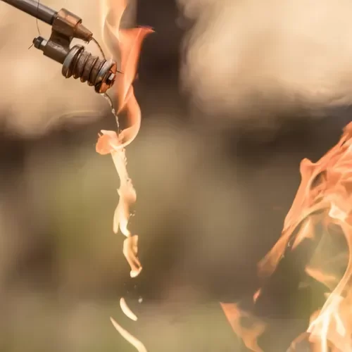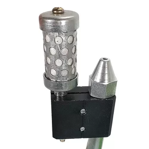 Junto a la boquilla se coloca un mechero que al estar encendido asegura que el combustible derramado arda.