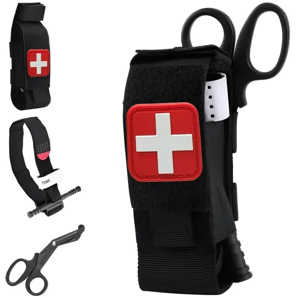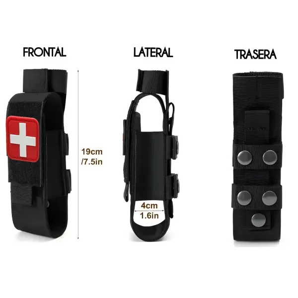 Porta Torniquete Molle: Estuche de cordura que se adapta a cualquier modelo de torniquete, compatible con sistemas molle o cinturones tácticos. Protege el torniquete del polvo, humedad y exposición, garantizándonos un acceso rápido.