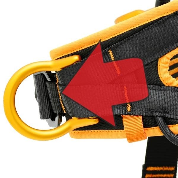 - Anillo trasero posicionado en la parte superior de la espalda que permite llevar mochilas y/o botellas de oxígeno; este anillo está orientado de tal manera que evita enredos en caso de recuperación de un entorno confinado.