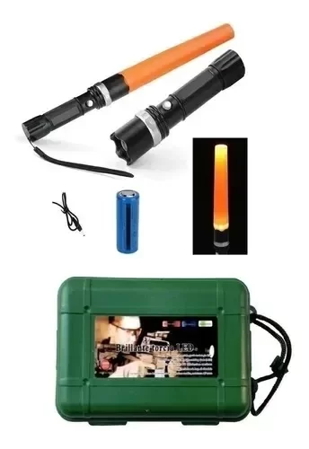 Incluye batería recargable, accesorio fluorescente SOS, accesorio para colocarle 3 pilas AAA. y conector para toma encendedor de auto.